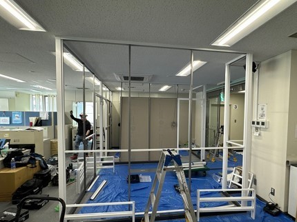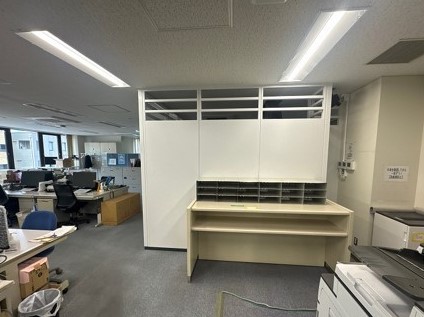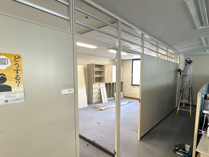 続いて、書庫によって仕切られた部屋があるため、執務エリアを広く使えるように、書庫とパーテーションを撤去していきます。