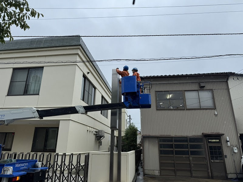 今回は、【アクリル看板を高所作業車を使って交換した事例】をご紹介いたします。