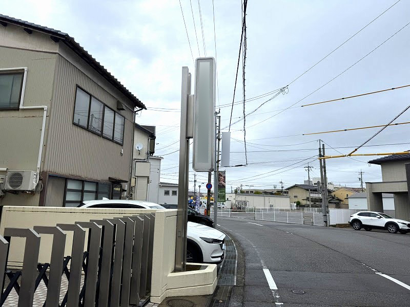 今回はお客様の建物横の植え込みの看板の交換ですが、高さがあるため高所作業車を使用する工事となりました。