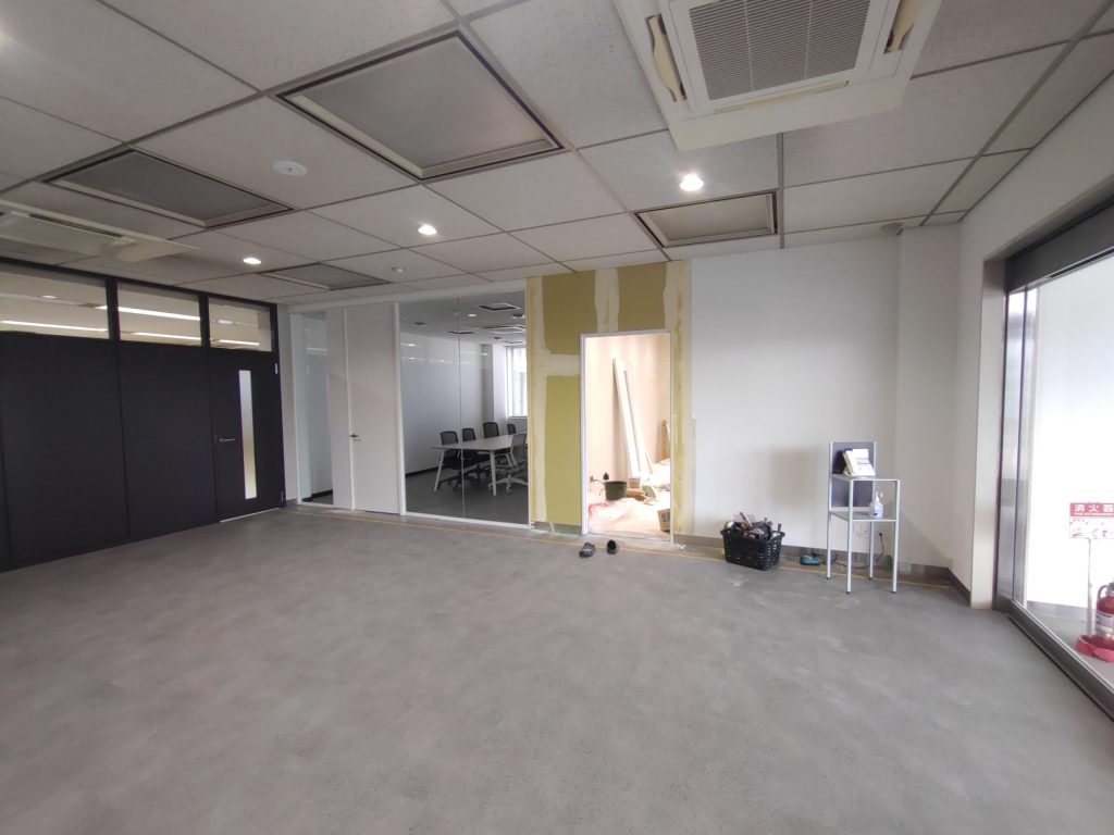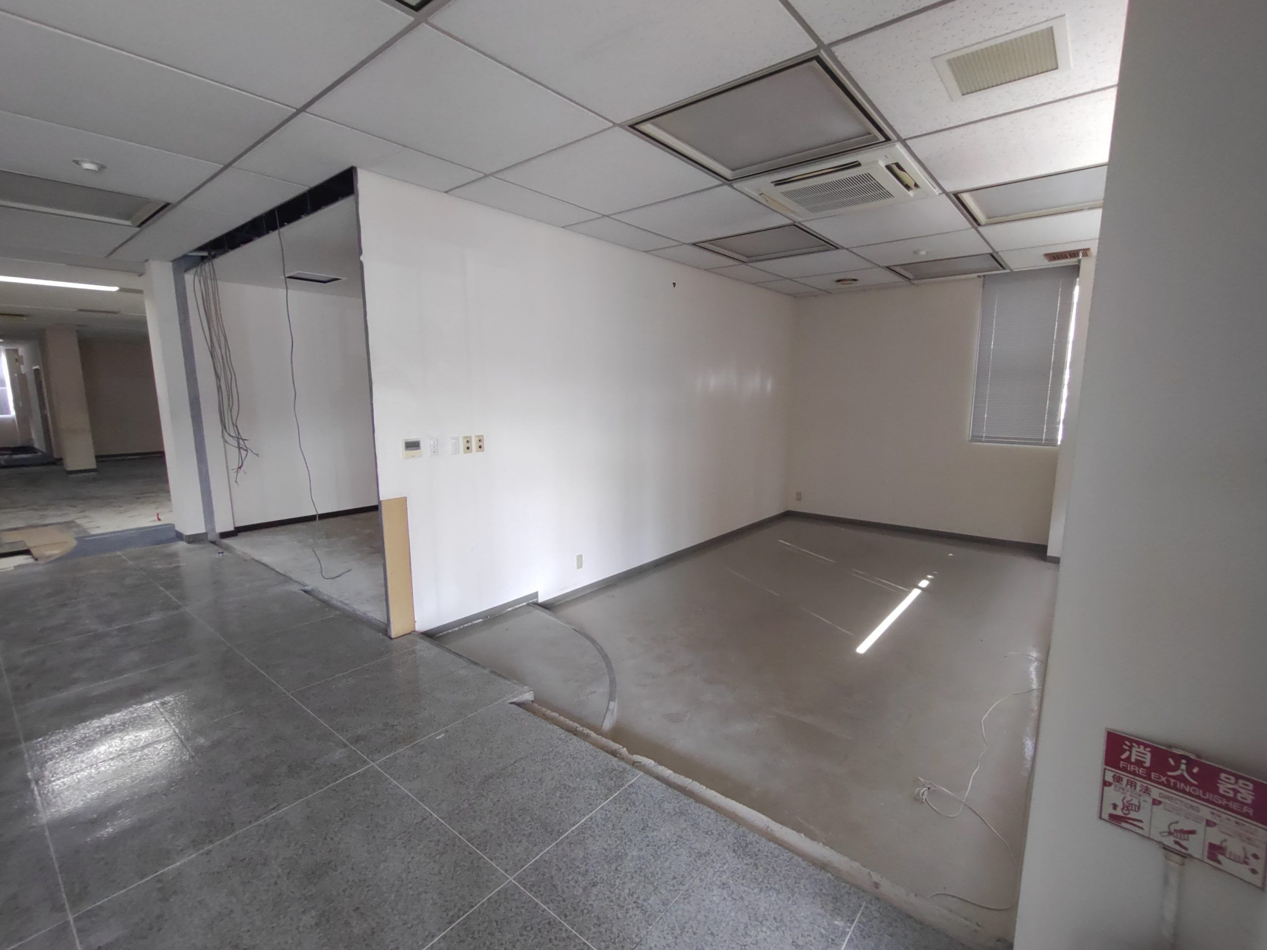 そこでまず、この腰壁を撤去し、段差を解消するためにOAフロアなどで使用される脚とベニヤ板を用いて床上げを実施。その上から新しいタイルカーペットを張り、フラットで使いやすい床に整えました。