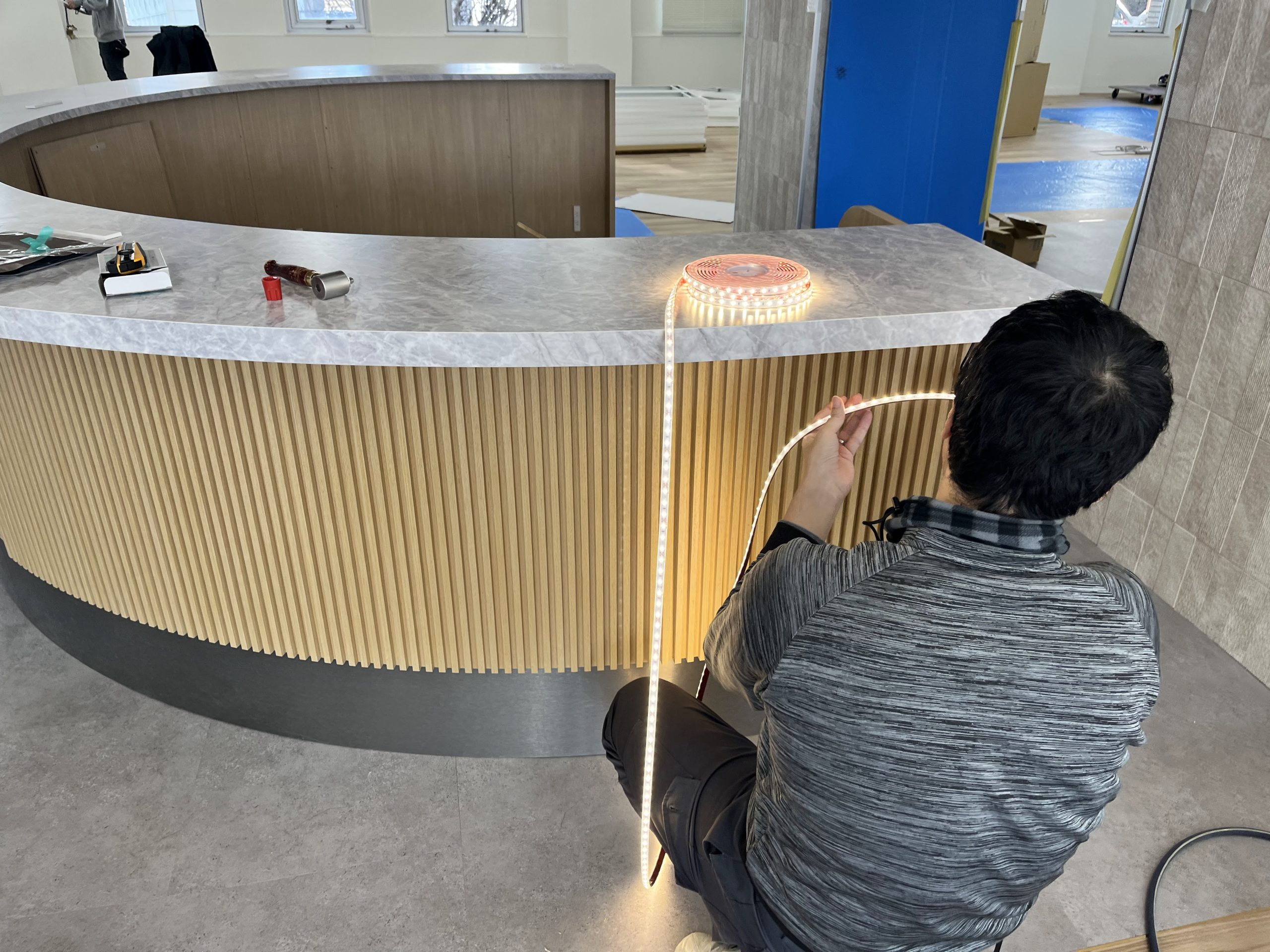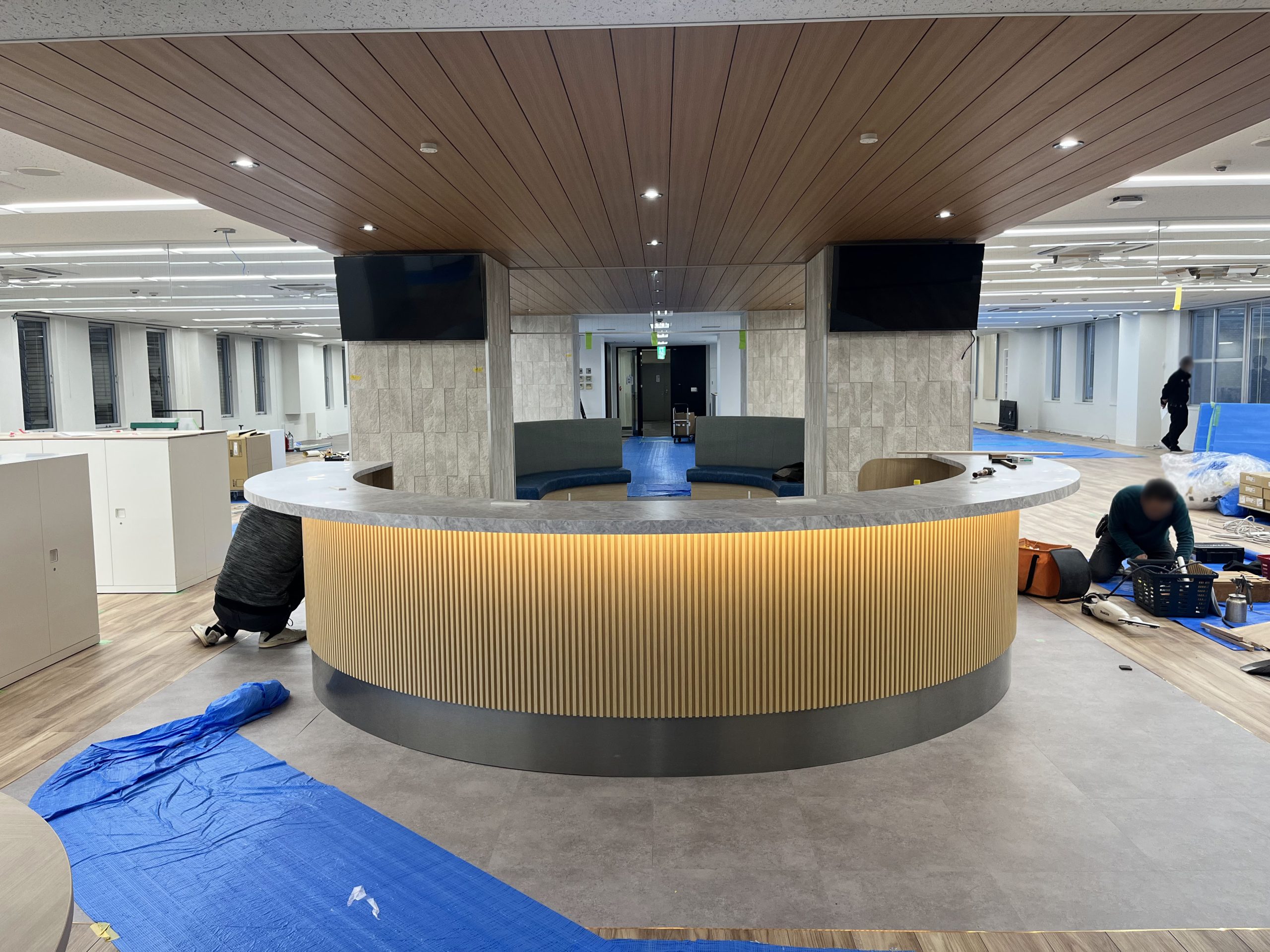 今回は、【エントランスの顔となる、造作円形カウンターの施工事例】をご紹介いたします。
