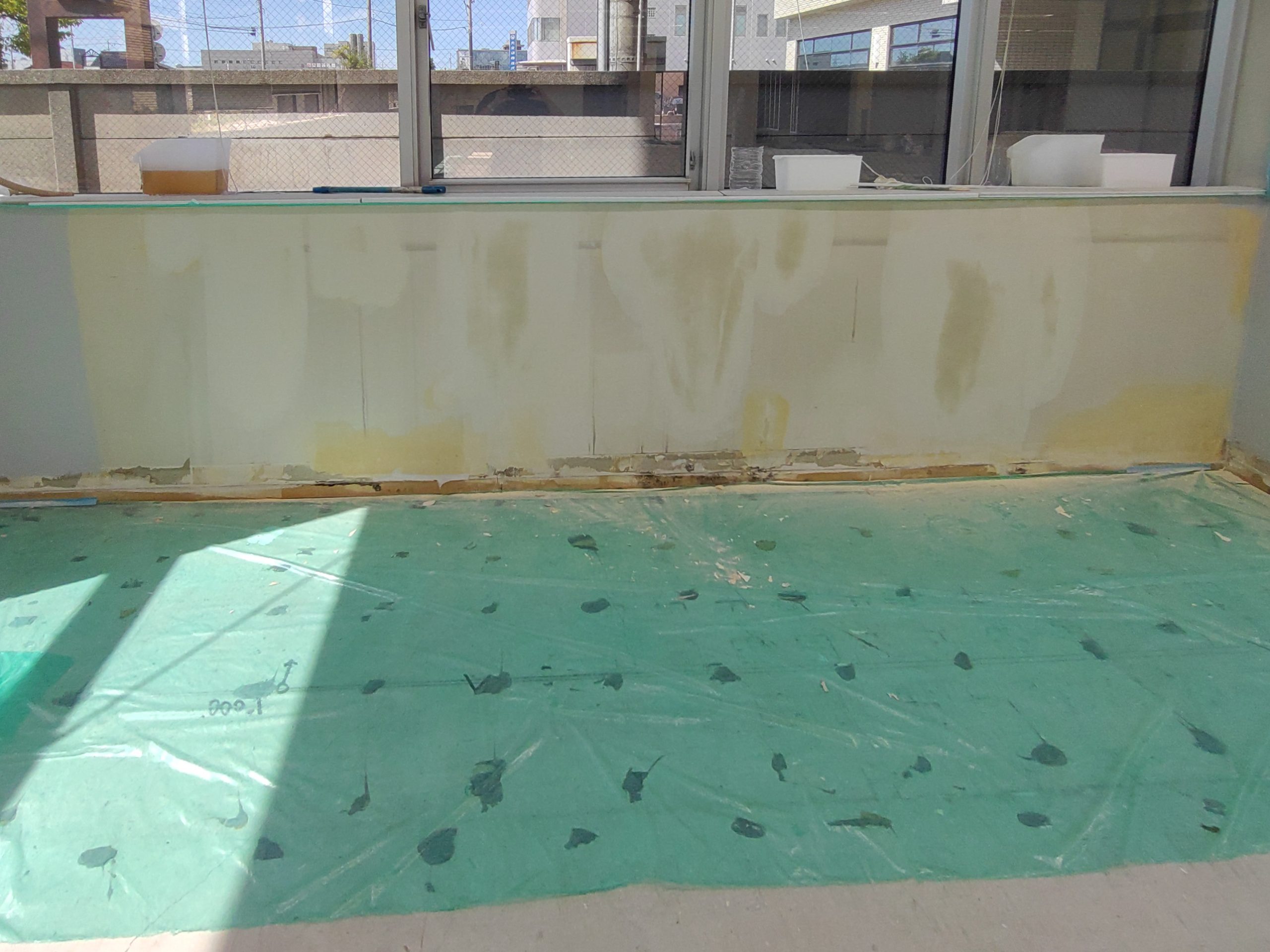 作業としては、該当する壁周辺にしっかりと養生をし、元の壁を剥がしていきます。